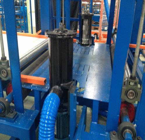 3.主機(jī)采用變頻調(diào)速,可按照預(yù)先設(shè)定的夾芯板長(zhǎng)度自動(dòng)切斷;